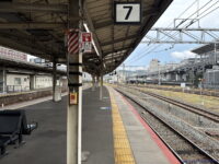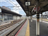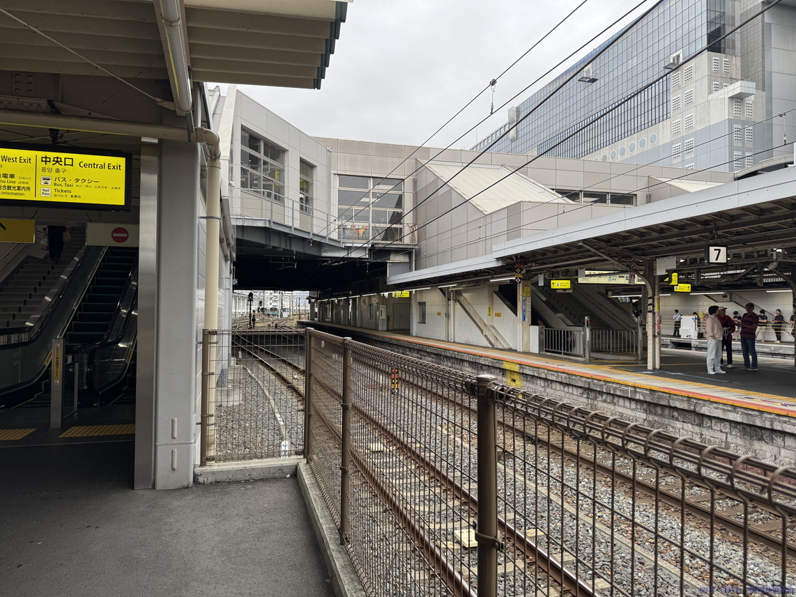 6・7番乗り場はほかのホームより米原方に寄っているため、必然的に大阪方は見える範囲が少なく、ちょっと厳しい。