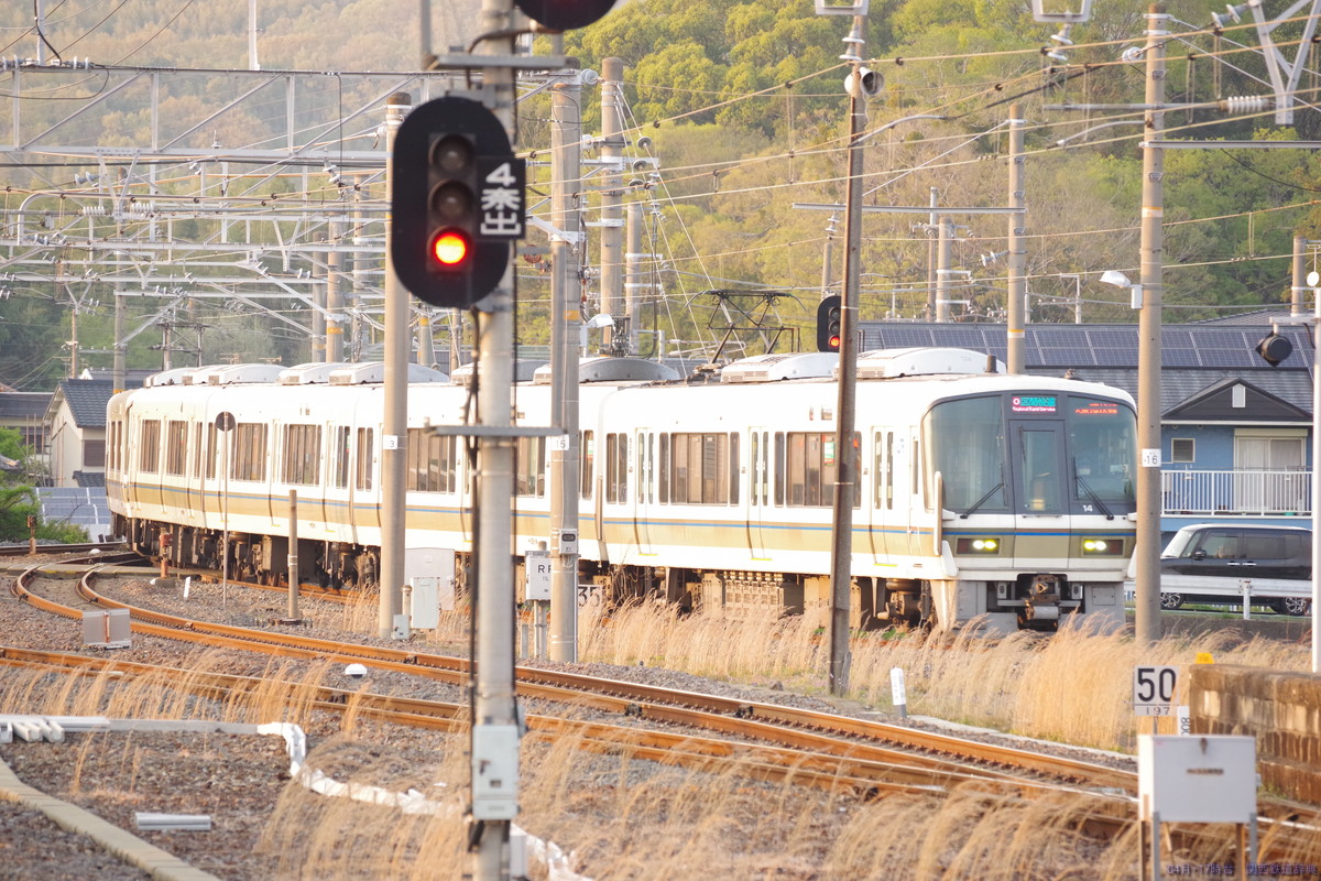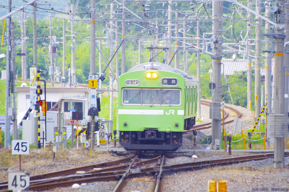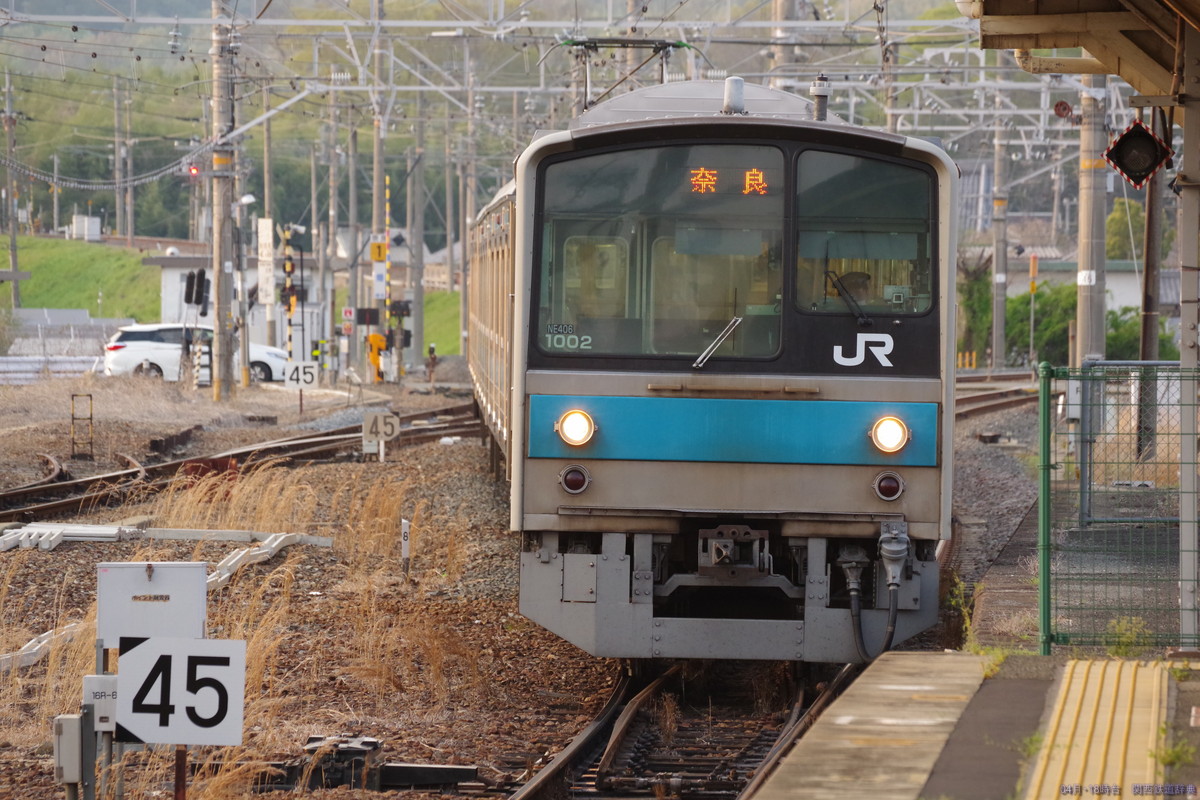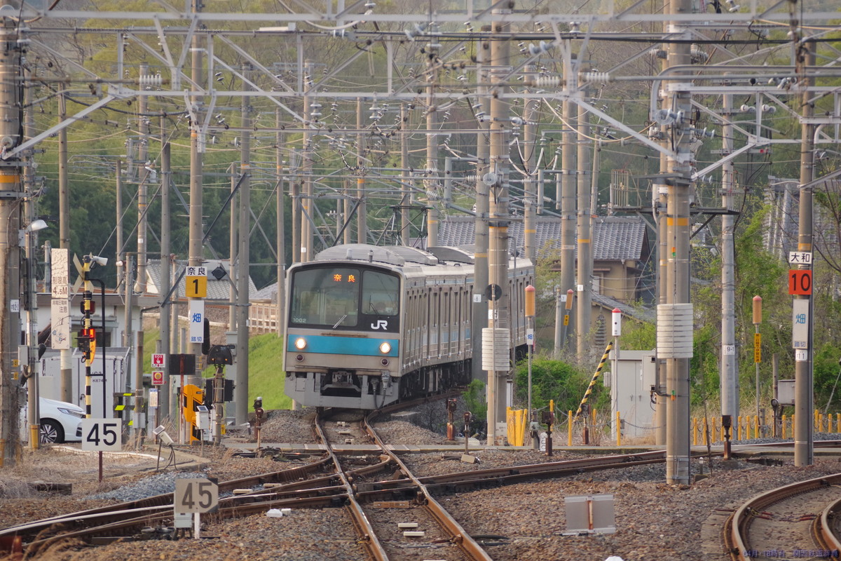 三路線が北から漏斗のように集結する木津駅。ホームは2面4線ですが、駅からすぐ分かれていく形のために配線は独特。撮りやすいかというと、うーん。
