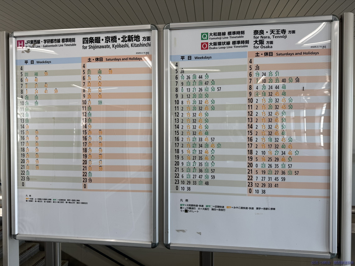 ・備考:奈良方面から一番奥の1番線に入るのは、早朝の学研都市線直通とわずかな奈良線列車のみです