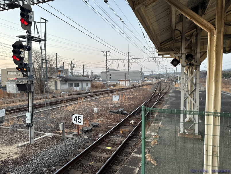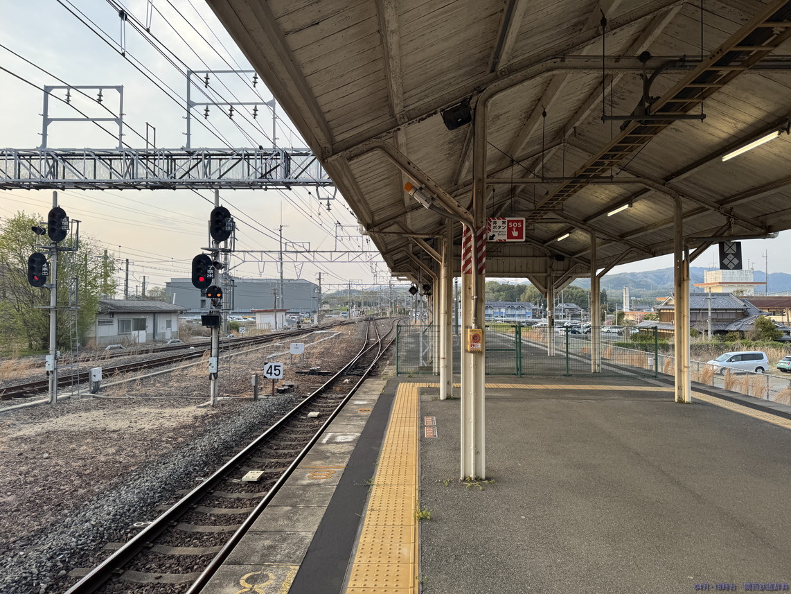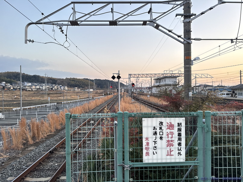 各方面行きホームの奈良方は、ホーム端に大きな詰所(信号扱い所?)があり、奈良方はまるで見えません。
