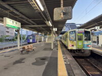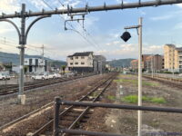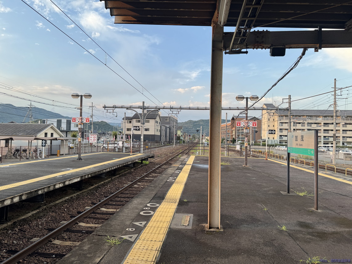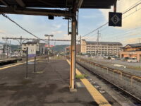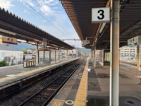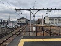 ここから非電化となる名古屋方面ですが、入換のためか架線柱は名古屋方にしばらく続いています。ホーム中央付近に架線柱があるのでそこさえ避ければ、角度はないですが撮りやすいです。