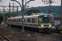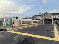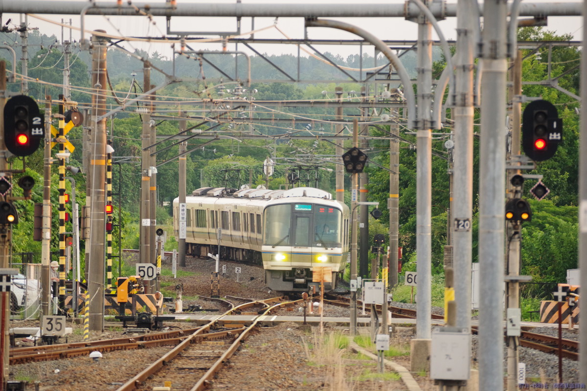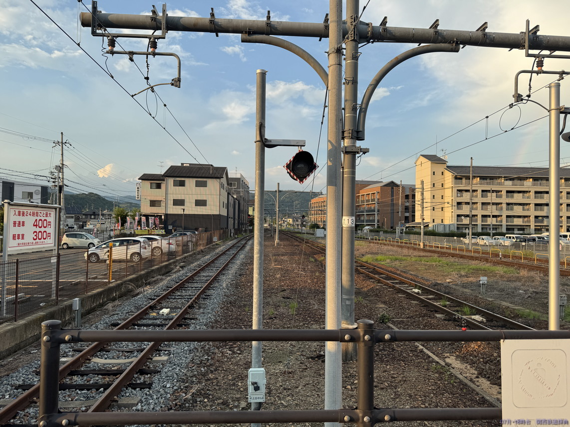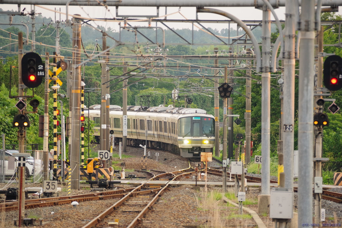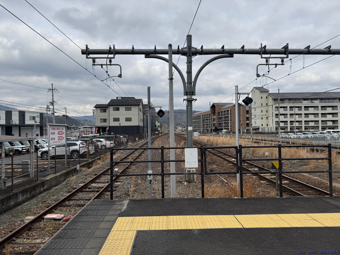1・2番のりばの奈良方は目の前が架線柱で、大和路快速で使われる8両は合流のため後ろが隠れます。ラッシュ時に2・3番のりばに入る列車なら直線なので後ろまでいけます。
