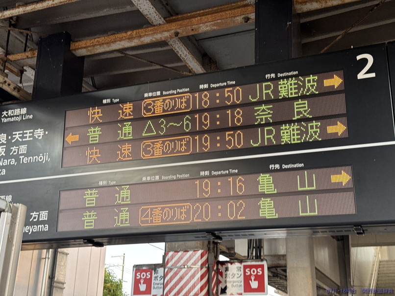 もうひとつのホームである3・4番のりばは日中は封鎖されていますが、ラッシュには3・4番のりばで大和路線と関西線の接続を行う場合があり、その時は開放されています。