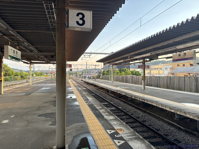 2面3線の加茂駅。日中は北側の1・2番のりばを使い、外側の1番のりばが大和路線・中線の2番のりばが関西線で、対面乗り換えを実施。