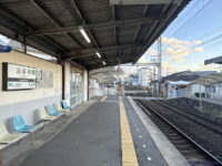 当麻寺といえば相撲発祥の地のひとつ。相撲の観光施設もあり、二上山・二上神社前よりは街の雰囲気。ただここも構内踏切が維持されており、やはりのどかな雰囲気が漂います。