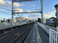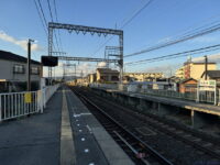 対照的に西側は直線で、上りホームからの下り列車は撮影しやすいです。近鉄でホーム端にある非常信号灯の柱も少し離れているのでその点も良いです。