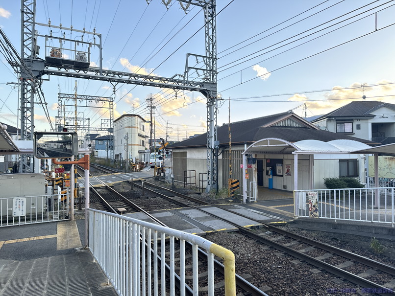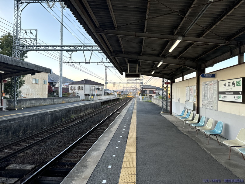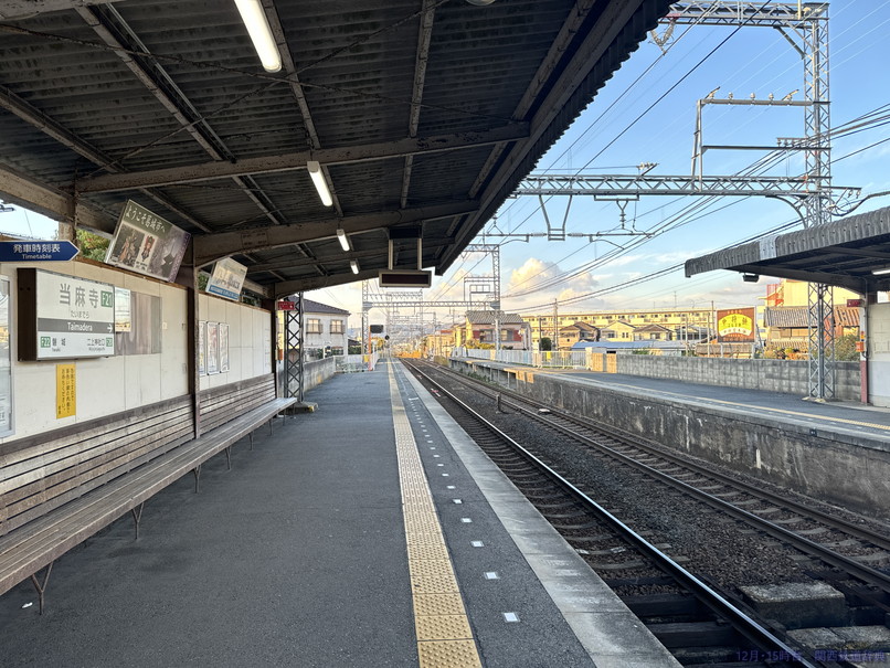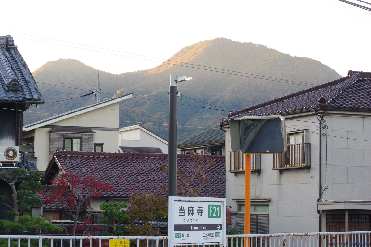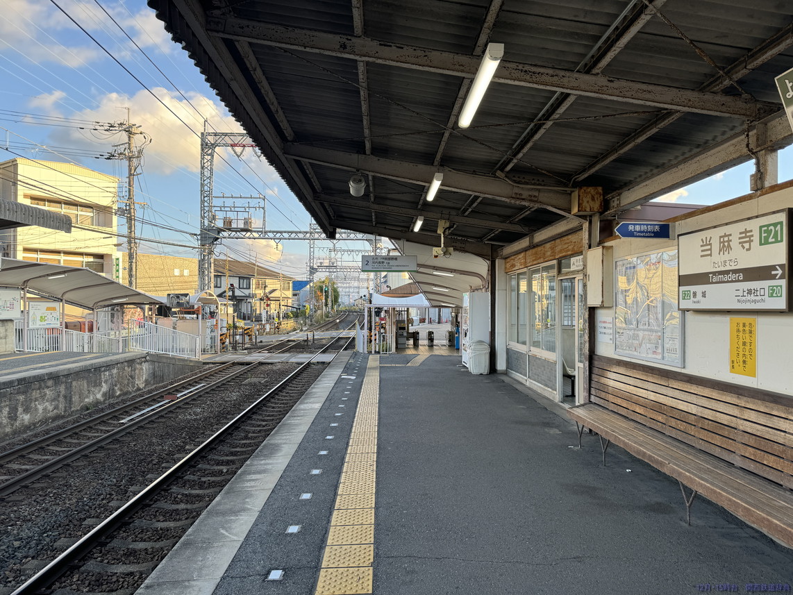 当麻寺といえば相撲発祥の地のひとつ。相撲の観光施設もあり、二上山・二上神社前よりは街の雰囲気。ただここも構内踏切が維持されており、やはりのどかな雰囲気が漂います。