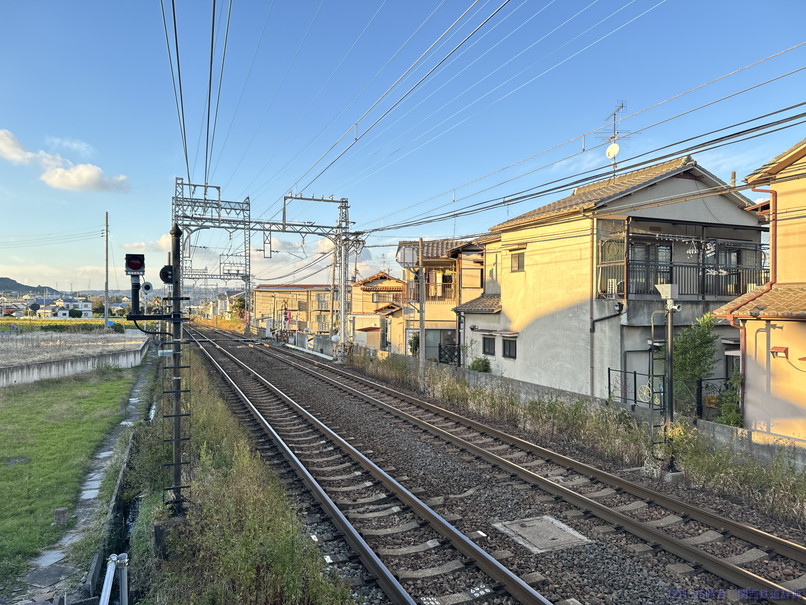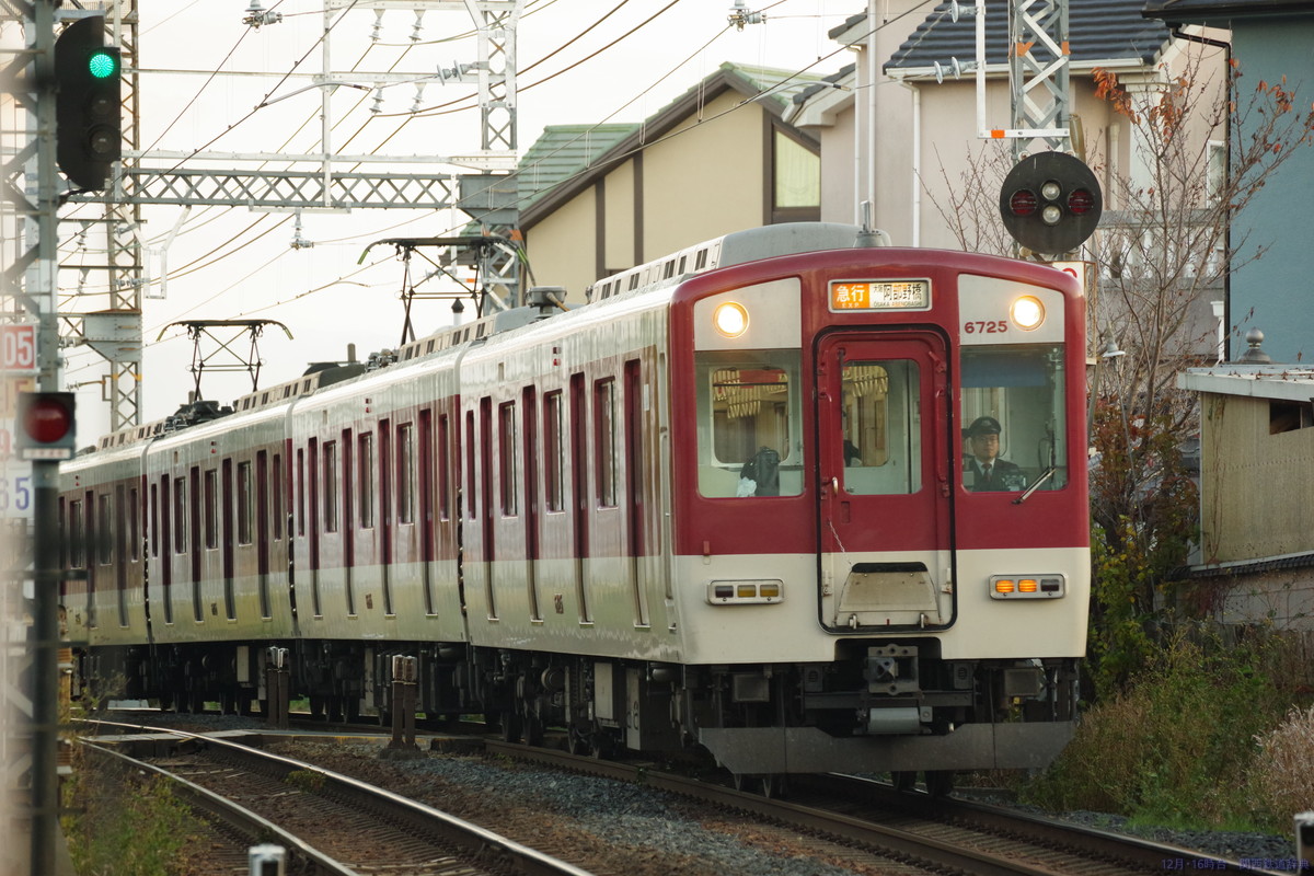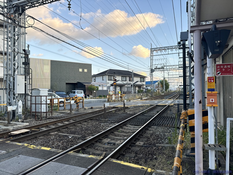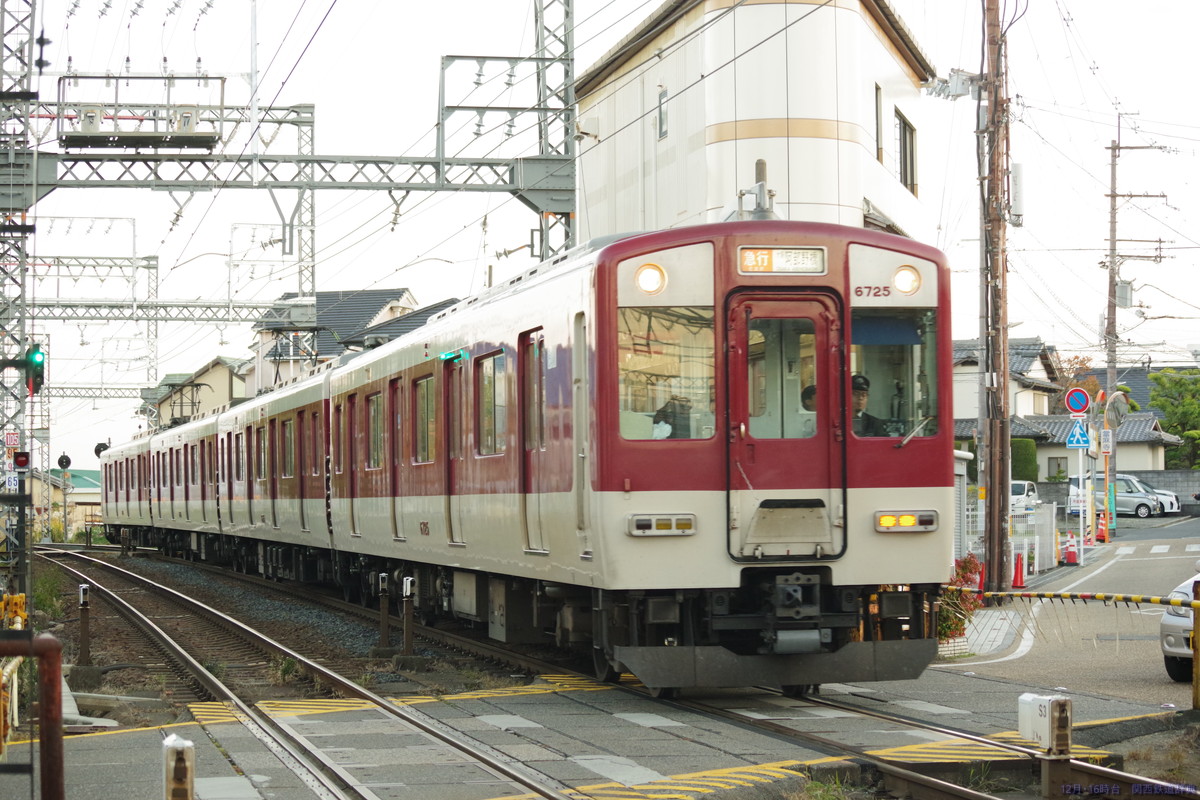 対照的に西側は直線で、上りホームからの下り列車は撮影しやすいです。近鉄でホーム端にある非常信号灯の柱も少し離れているのでその点も良いです。