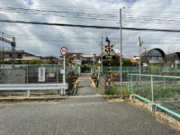 富雄駅からは線路沿いのイズミヤを過ぎてすぐ、学園前駅からは西に二つ目となる踏切が第1号踏切。人・軽車両専用。