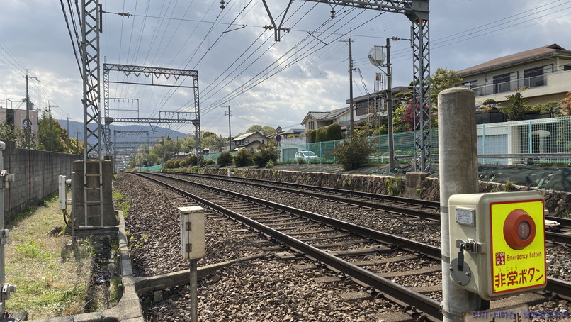 下り列車は200mほどの地平直線区間で撮影がしやすい。奈良線としては非常に貴重な、オーソドックスな踏切からの地平直線撮影ができる場所となる。