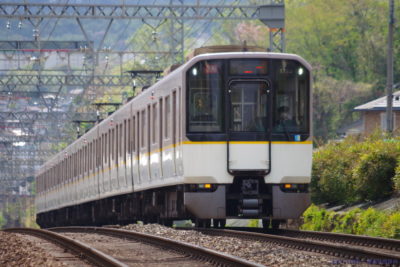上り列車は学園前駅を出ての短い地平区間。北側から撮影する場合、非常停止ボタンがあるので引きだと被りがちだが、望遠なら問題なし。陽の長い時期の夕方なら側面にも陽が当たるのではないだろうか。