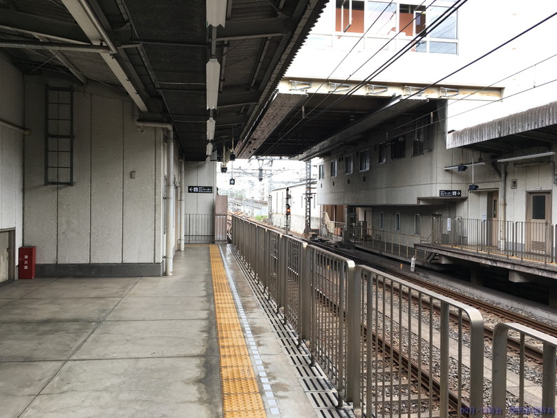 駅の両端に階段があり、その手前には柵もあるので、全体的に撮影しにくい駅。
