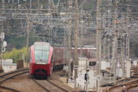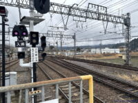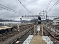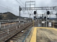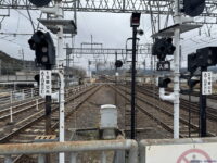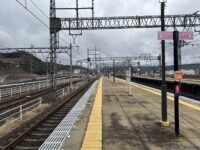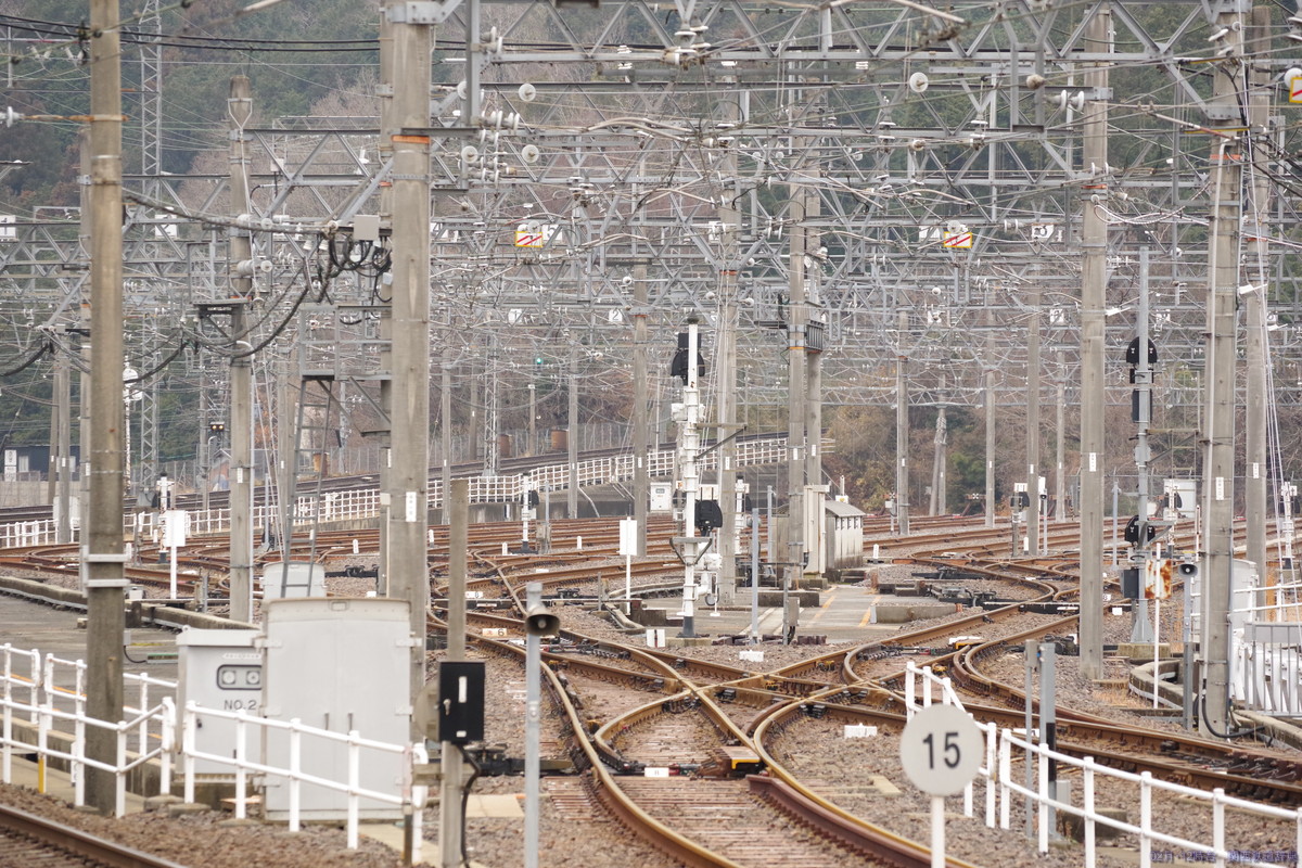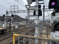 ということで、上り列車を上りホームから撮るのもアリです。ホーム端は内側は信号機がいろいろですが、外側はそうでもなく、黄線内から撮影可能。線路間の柱さえ中望遠でかわせばほぼ正面からにはなりますが撮影可能です。