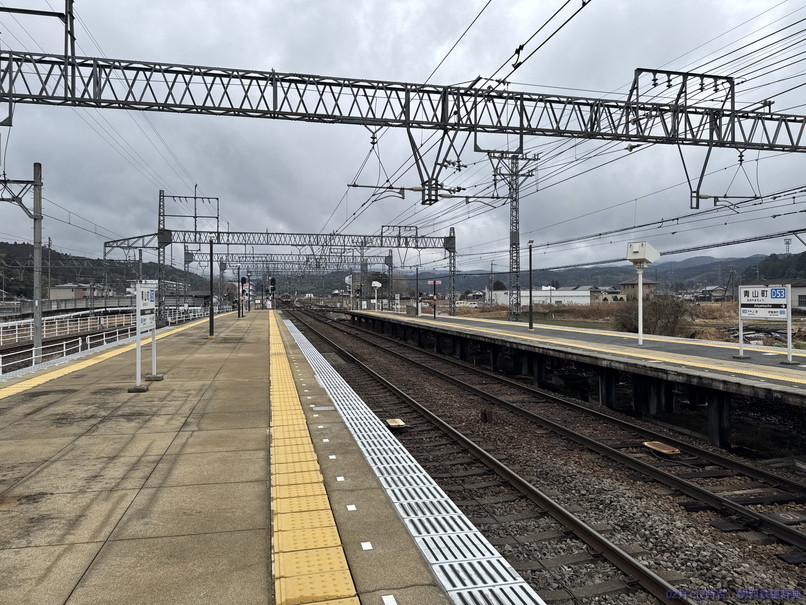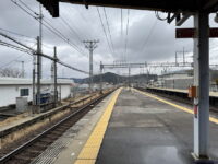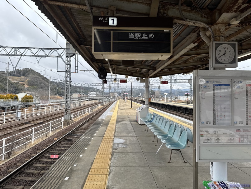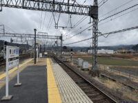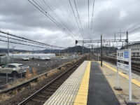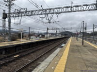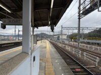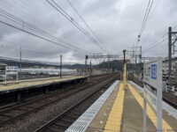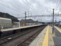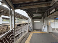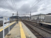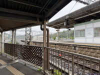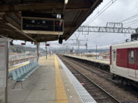 上りホームからの下り列車撮影。こちらはすぐ奥でカーブしており、引きで5-6両くらい入ります。