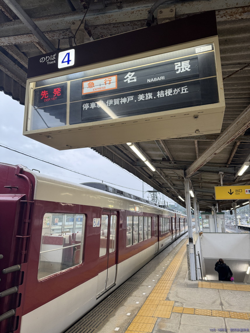 青山町。田園都市線住民だった子どもの頃の自分には、上本町でこの行先を見て、青山一丁目のような駅を想像したものでした。現実には、この駅は大阪からの通勤圏の限界点。それもけっこう限界な感もあるのですが、いつまで青山町行きの列車を見ることができるのでしょうか?