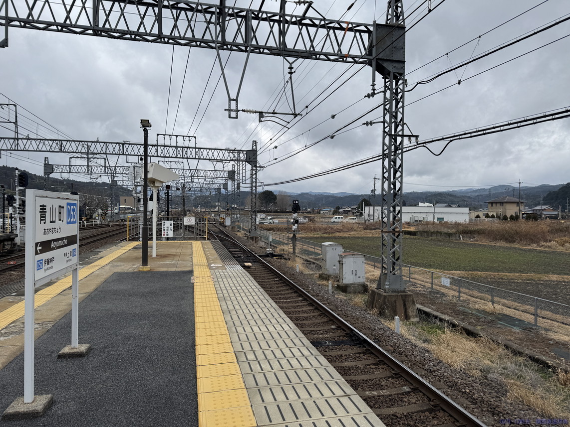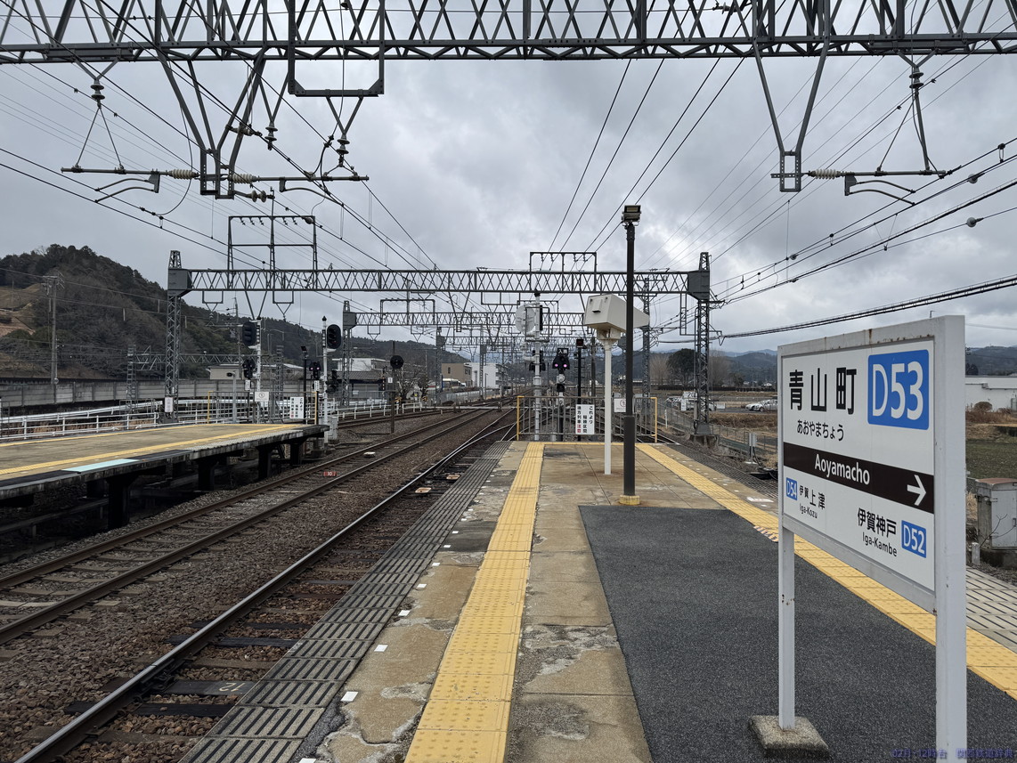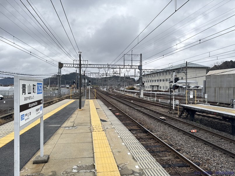 2面4線の青山町駅。大阪から折り返し列車の設定があることもあり、伊勢方上下線間に折返線があります。そのため大阪方面の主本線は外側。駅手前なら撮れますが、踏切があるため障検被ります。駅奥だと引上げ線に列車いたら被ります。