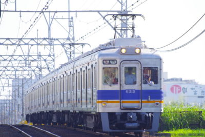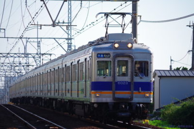 上り列車を撮るなら東側から。遮断器が降りると障害物がほぼなく、障検さえかわせば非常に撮影がしやすい。奥の堺市側に高い建物が少ないので、背景がとてもすっきりしている。側面も含め順光になるのは朝8時くらいまでだろうか?