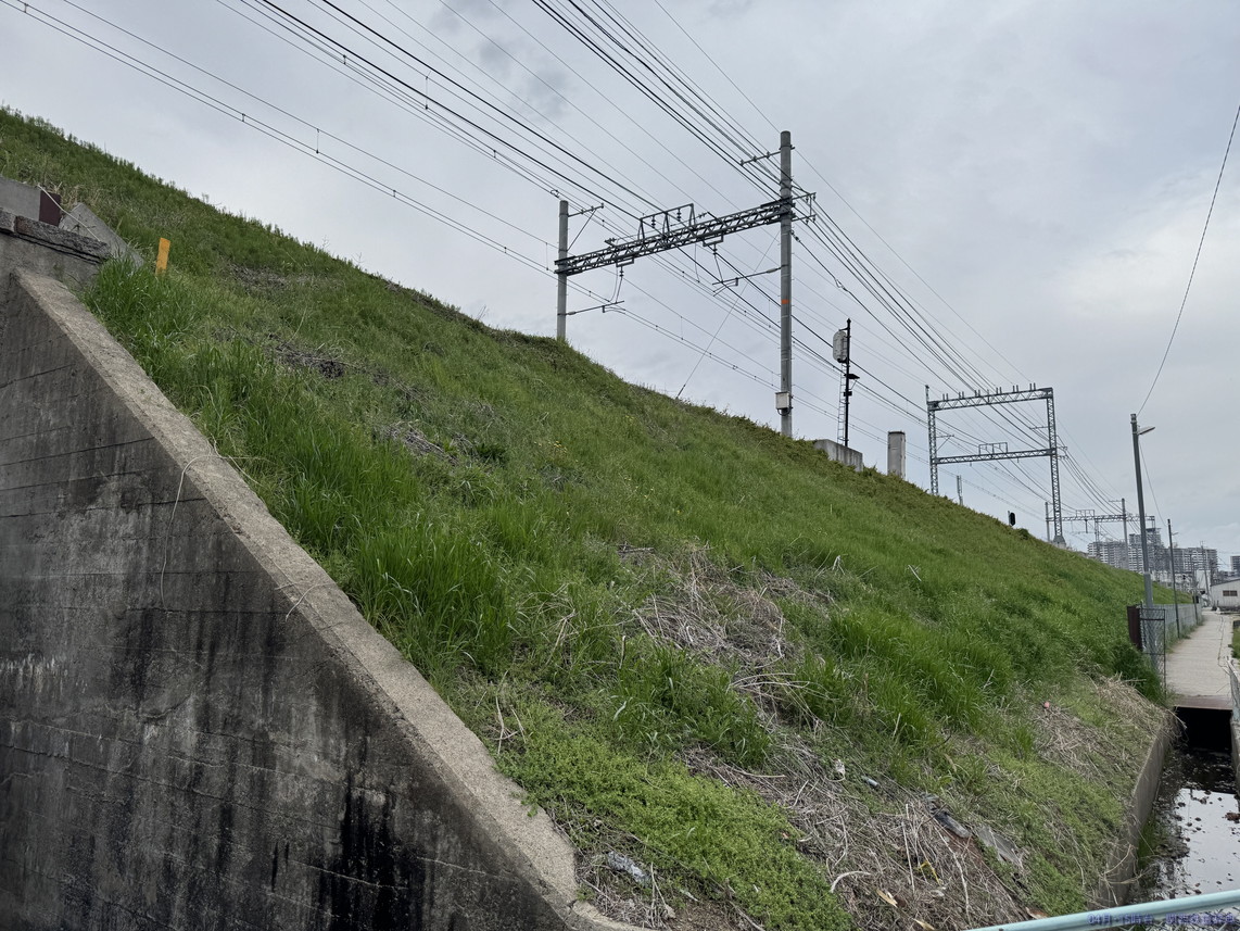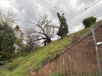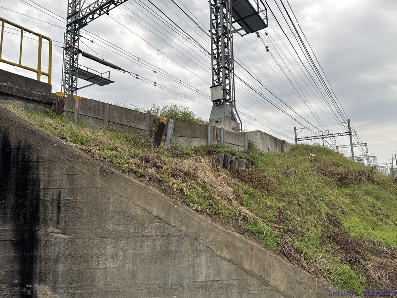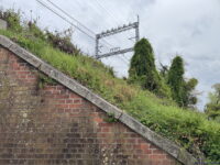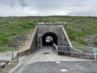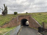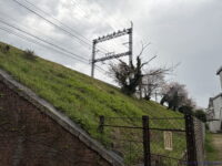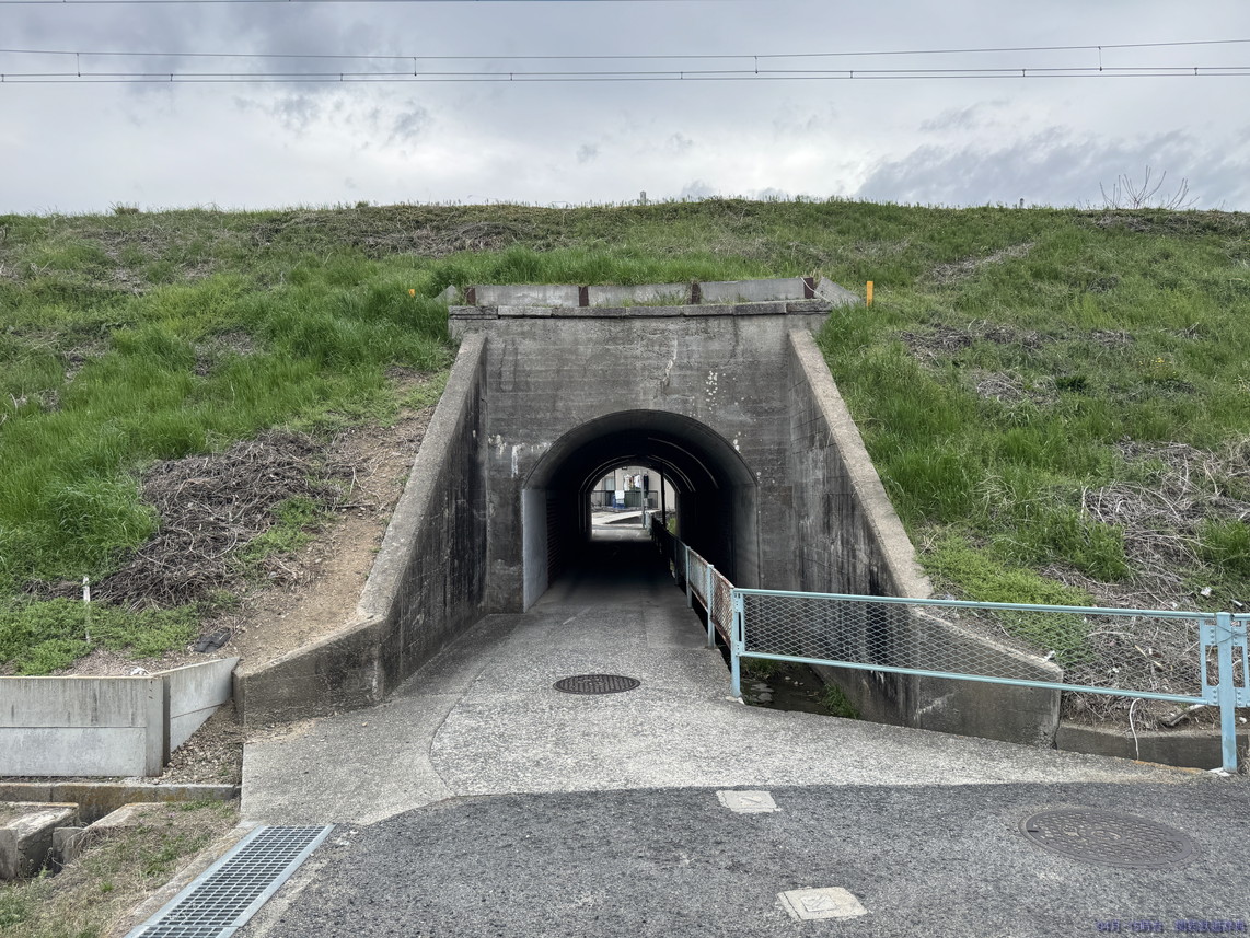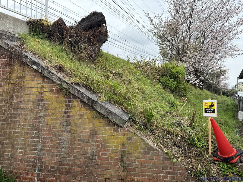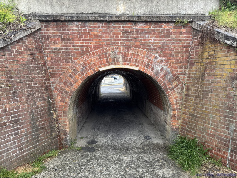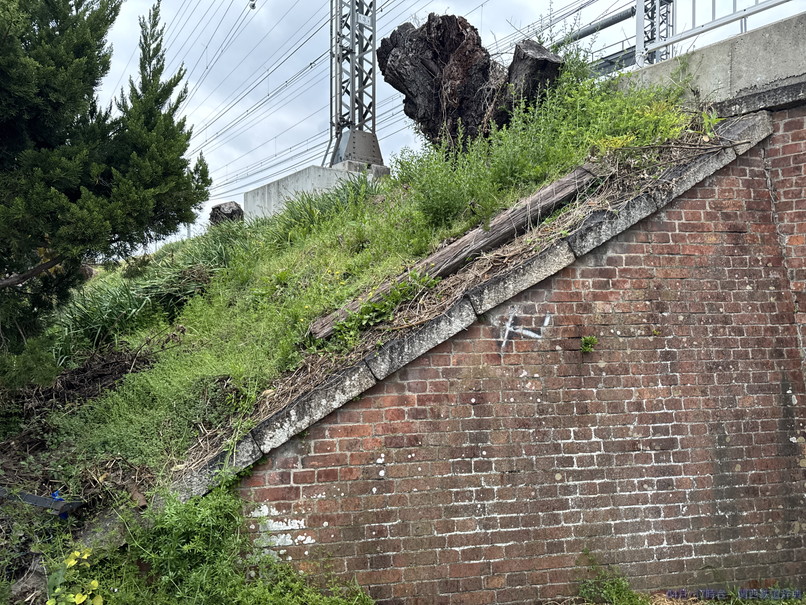 長い築堤にはいくつか築堤を抜けるトンネルがあります。いずれも煉瓦作り(北側は補強でコンクリが多い)で「○号暗渠」と文化財登録されています。北側はなぜか全く木が植えられておらず、下からよく見えます。