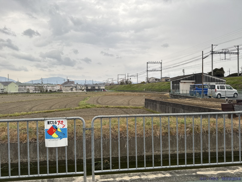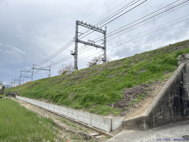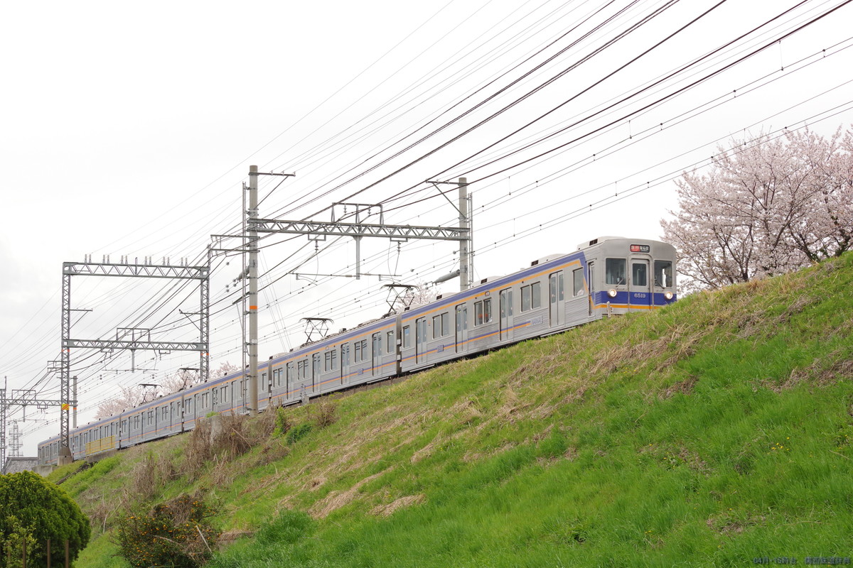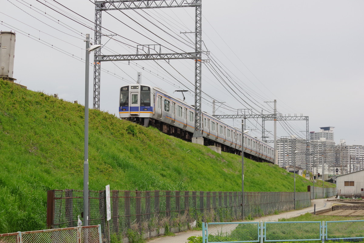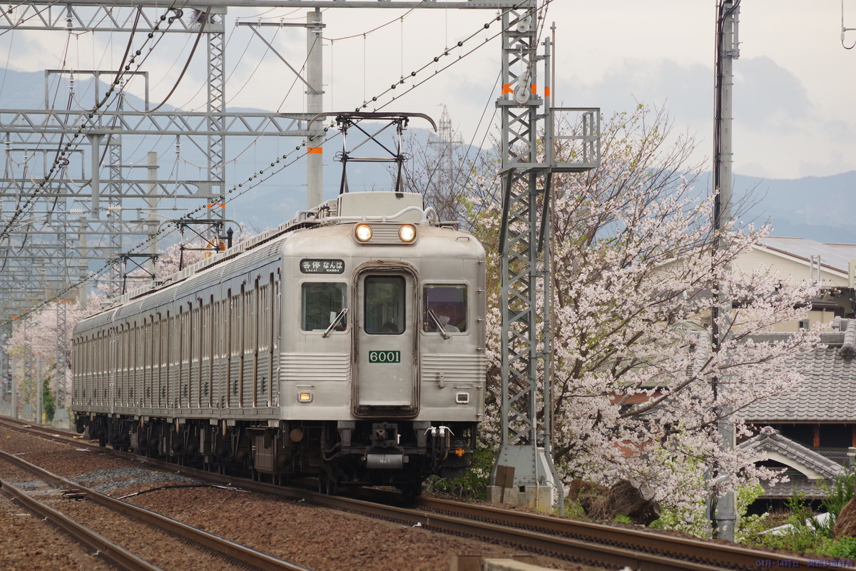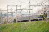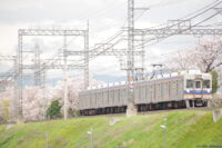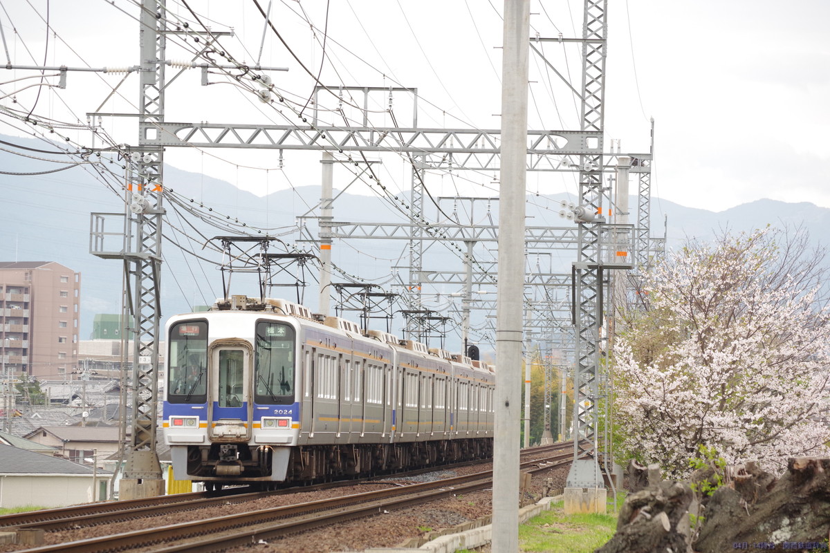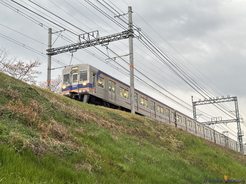 狭山から大阪狭山市の間は、大半の区間が真っ直ぐ築堤で進む形。その築堤の片側には多くの桜が植えられており、桜の季節には南海でも有数の列車沿い桜並木となっています。