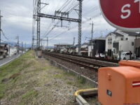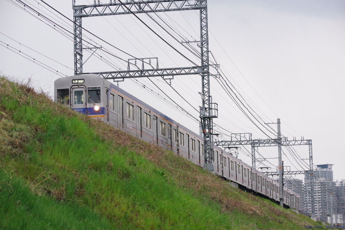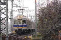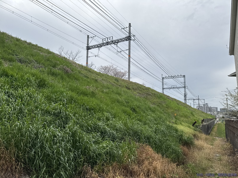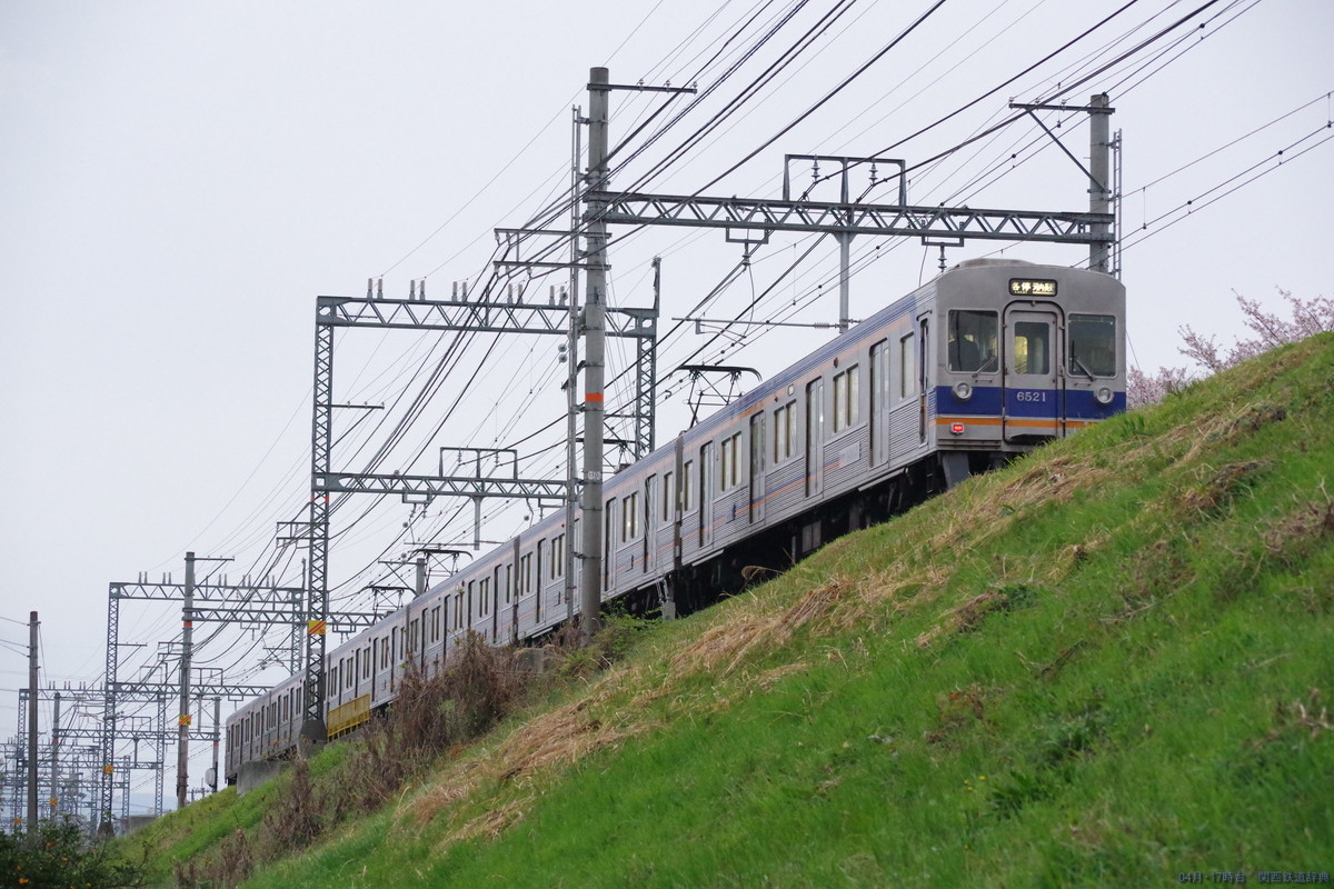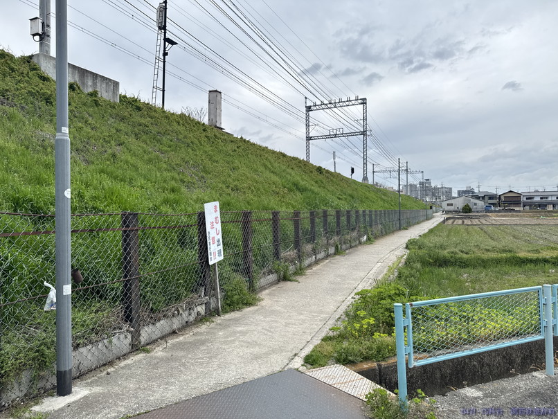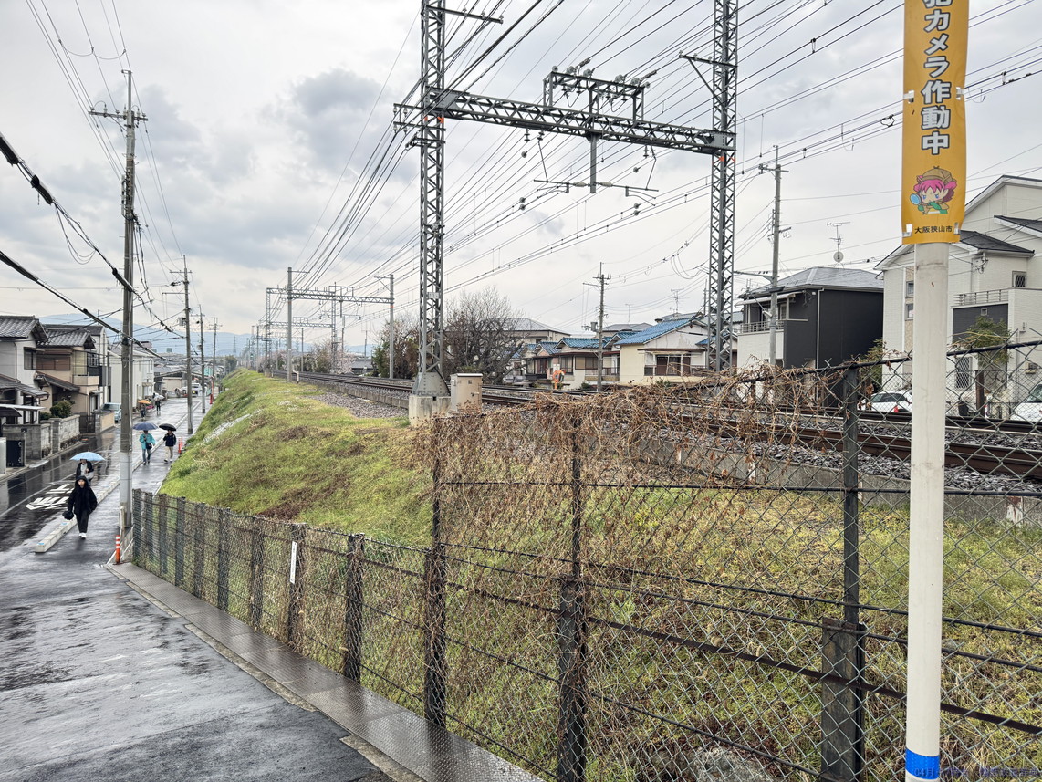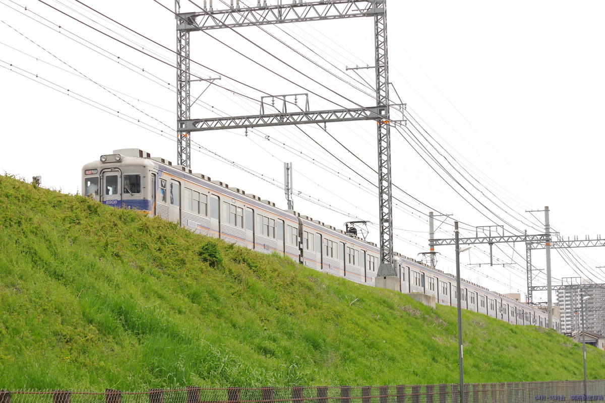 狭山から大阪狭山市の間は、大半の区間が真っ直ぐ築堤で進む形。その築堤の片側には多くの桜が植えられており、桜の季節には南海でも有数の列車沿い桜並木となっています。