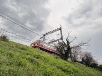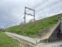 2号暗渠は1号より明らかに大きなトンネル。ここも1号と似たような感じ。上り列車は奥に桜見えますが、頭しか見えないので桜が列車で隠れます。下り列車は下かろ撮りやすいです。