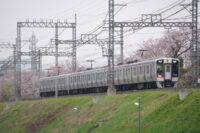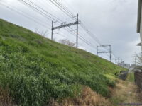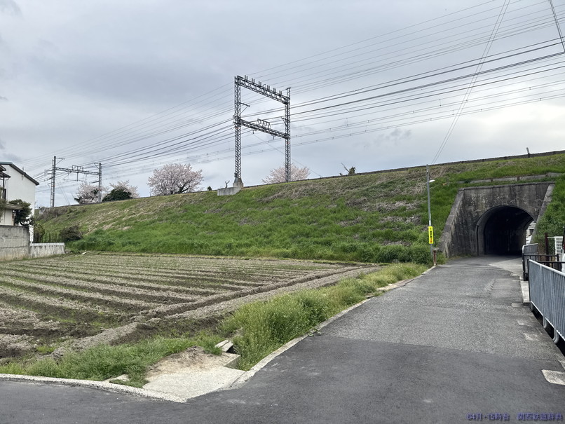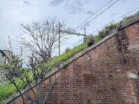 3号暗渠は両側に桜があります。北側からだとやはり桜は頭だけになりがちで列車とはやや撮りづらいです。南側から上り列車が頭を出したところがいい感じ。北側から下り列車はトンネル横まで住宅が来ているので撮りづらいです。