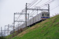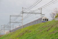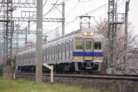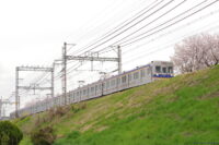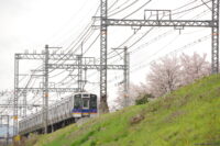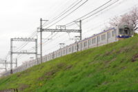狭山駅の隣にある小さな踏切です。なんのことはない直線の踏切ですが、桜の時期だけは別で、望遠で桜を背景に進む列車が撮影可能です。桜は概ね2ヶ所に分かれており、大型車4連がちょうど良く間に挟まります。