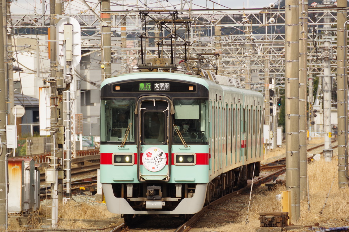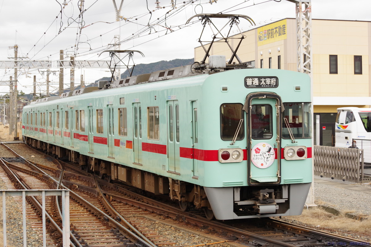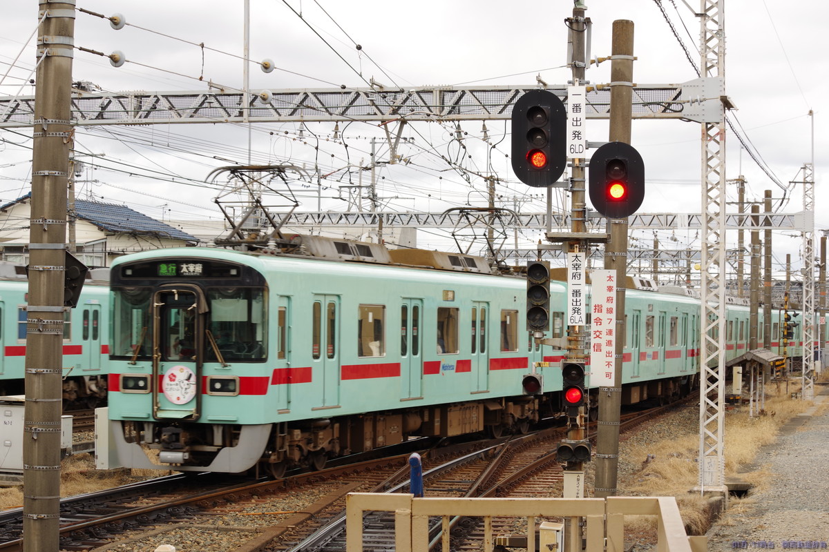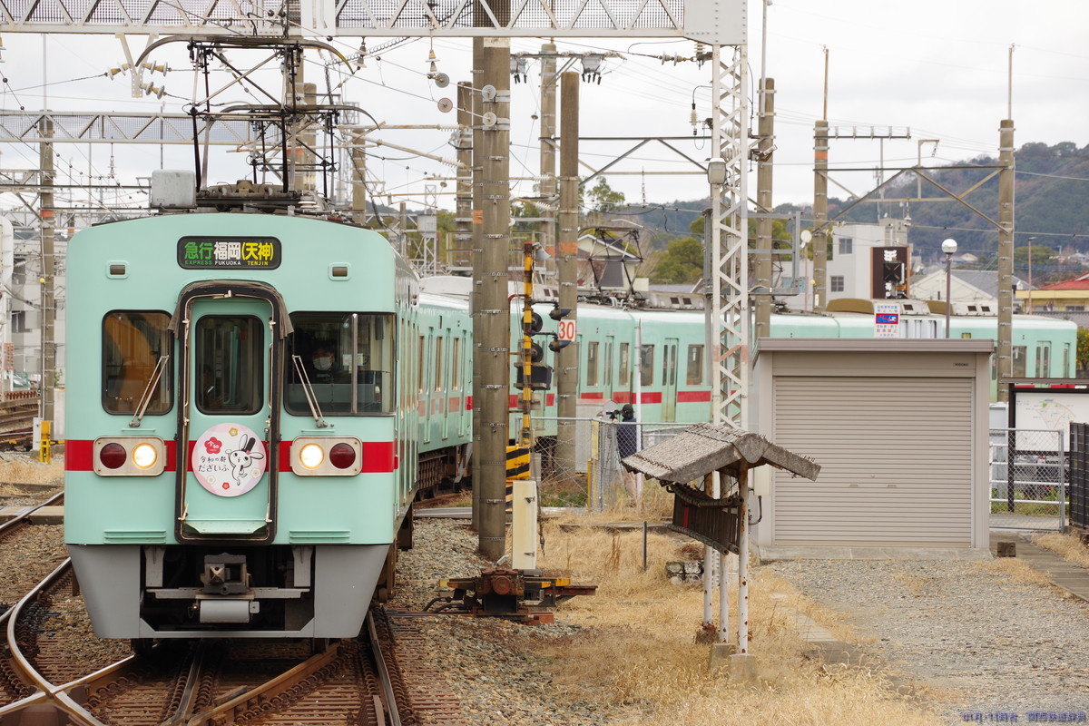 ・備考:正月は、普通が主本線に入り、特急・急行が副本線に入って両側のドアを開けて1番線の太宰府行きとの対面乗り換えを実施するとともに、福岡→太宰府と太宰府→福岡の直通急行が2番線を使用して下り普通と対面乗換を実施していました(普通着→特急着発→普通発→普通着→太宰府発福岡行き折返着発→急行着発→普通発→普通着→福岡発太宰府行急行折返着発→普通発→普通着→特急着発)