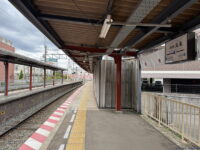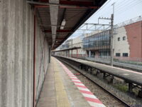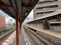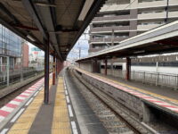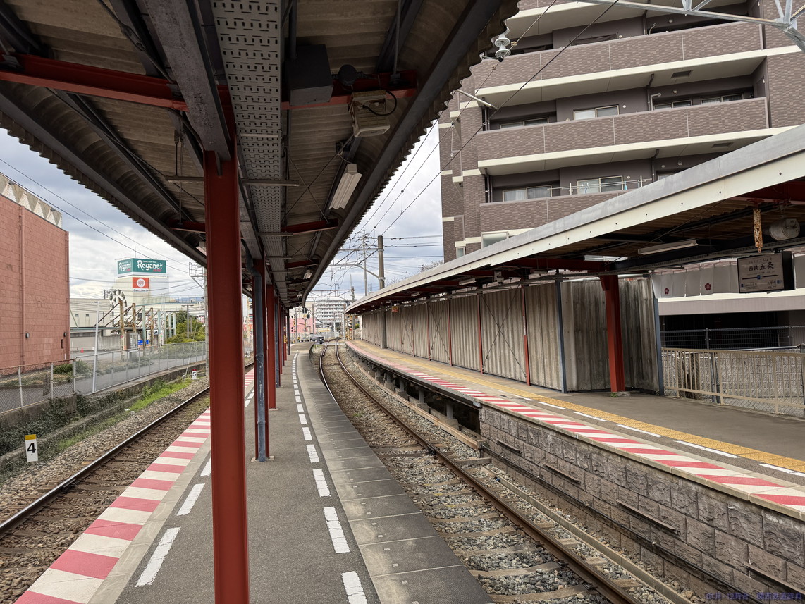島式ホームはかなり狭く、阪急の中津駅くらいしかありません。2番のりばは使ってないらしいので、柵立てれば…と思うのですが。