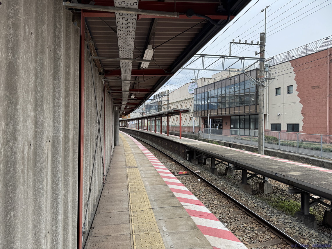 先述のとおり、この駅の線路の片側はホームに挟まれているのですが、挟まれた線路の対向側にあるのがこの1番のりば。駅舎もこちらにあります。