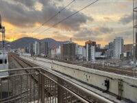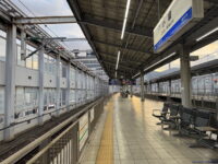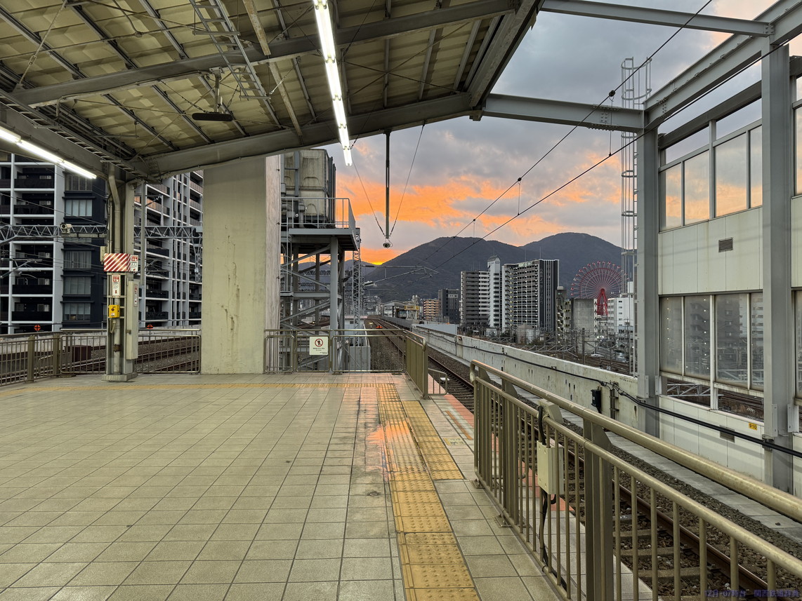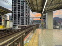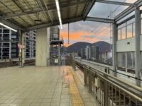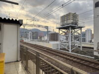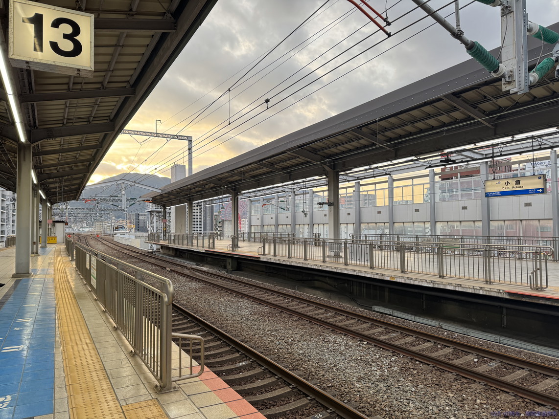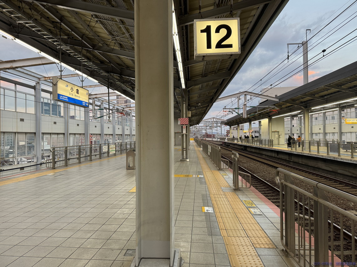 本州から関門トンネルを抜けると、すぐに小倉駅に到着します。市街地に通したゆえか、角度は違えどどちら方向も駅手前にカーブがありますが、全駅停車なのであまり関係無さそうですね。