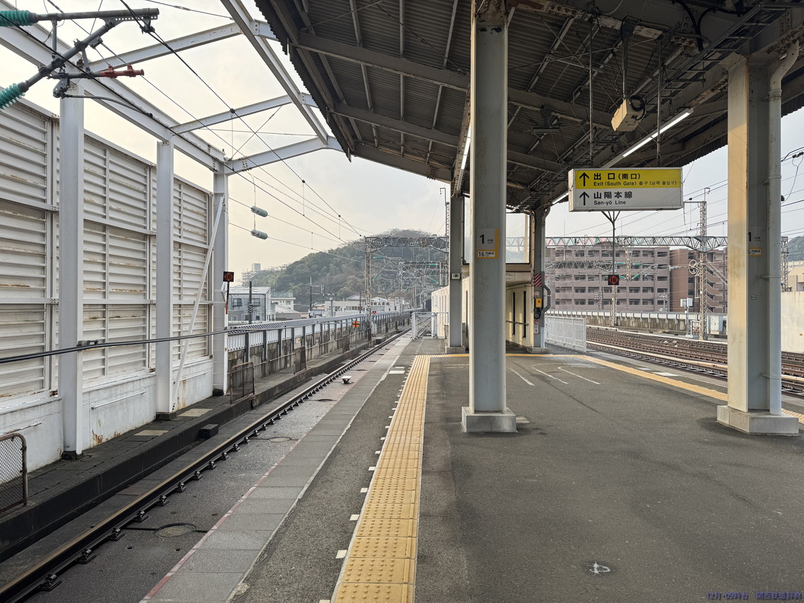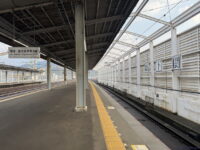 新下関駅は下りが島式1面2線+通過線、上りが単式1面1線+通過線の2面5線の駅です。