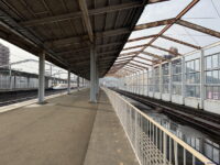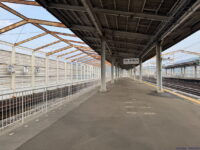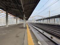 上りホームの端からは通過線+島式1面2線の下り線が比較的撮影しやすくなっています。ホームはほぼ南北方向なので、午後に順光になります。