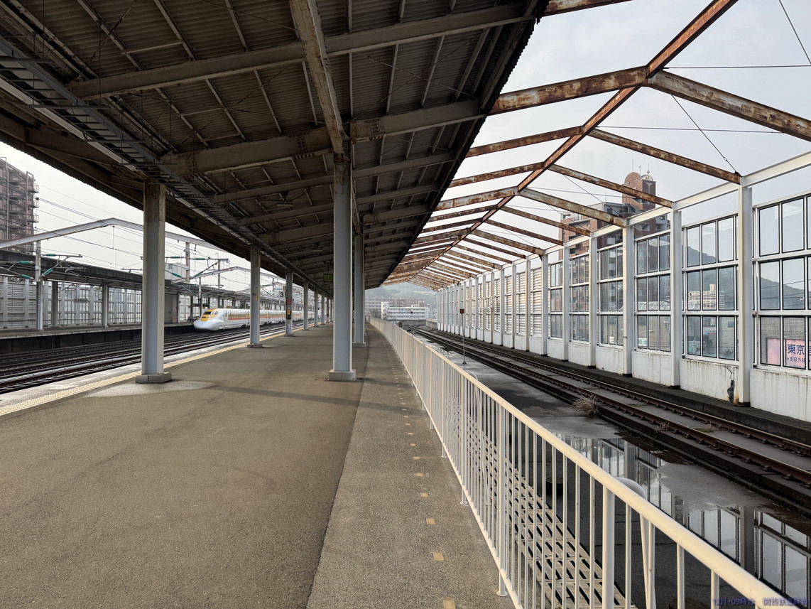 ・備考:写真の500系は11:27着のこだま841号。2025春ダイヤでは11分も停まって、11:34着発さくら549号の待ち合わせをします。島式ホームを完全に活かす唯一の場面ですが、これ緩急接続必要なんでしょうか…?