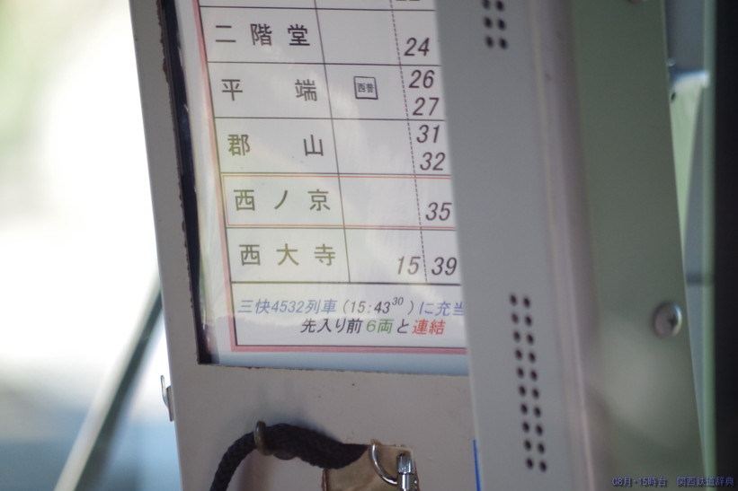 このような特殊な運用であるためか、下の天理行きに掲出されるような行き先を示すヘッドマークではなく、上掲の臨時とのみ表示されたヘッドマークが天理から西大寺までのみ掲示されることになっています。