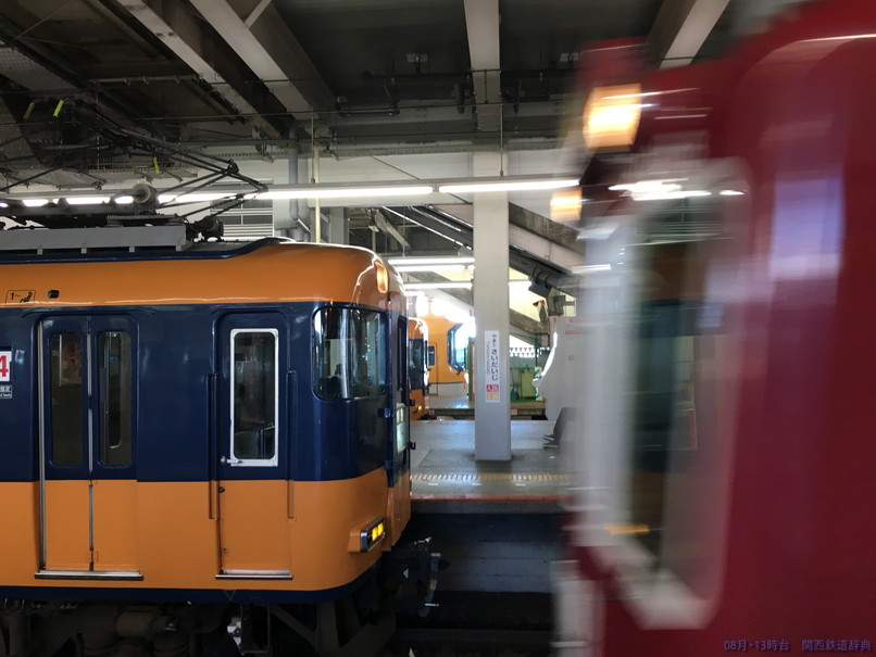 その前に、こちらは同日13:25頃の大和西大寺駅。見る機会が減少した旧色特急車の並びを見ていると…
