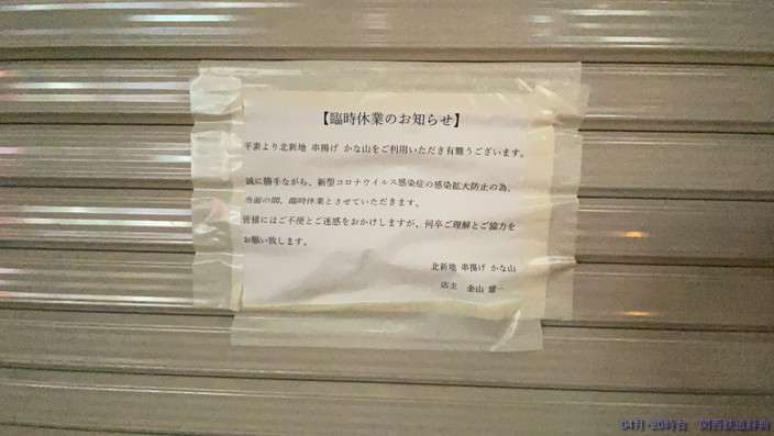 緊急事態宣言で営業自粛を求められた夜の街。大阪「キタ」最大の歓楽街である「北新地」はどうなのか。仕事帰りに通り抜けてみましたが、全く人がいない…1密も存在しない、北新地。北新地駅もあるよ。2020年4月19日、そんな様子を収めた動画です。