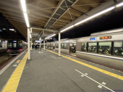 2020年2月20日、JR神戸線は人身事故で普通列車のみ芦屋~西明石が運転見合わせに。つまり大阪方面からの普通は芦屋折返しとなりました。結構レアな芦屋駅折返しの様子です。