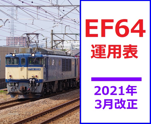 2021年3月改正時点でのEF64運用表です。「貨物時刻表2021」からの書き起こしです。