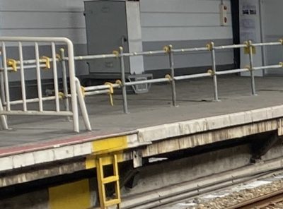 2020年5月2日、いつものように鶴橋駅を使うと、これまでなかった小さな変化に気づきました。ホームの線路側の端に、削られたままの場所がある?しかも1ヶ月前には削られていなかった…なぜいまさら?