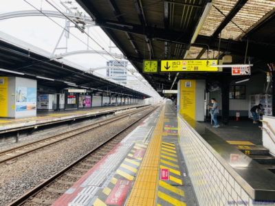 ホーム京橋方には鶴橋駅のホームドア工事に進展!外回りホームにも作業スペースが登場するでも触れた作業スペースがあるので、そちらから進んでいたのですが、しばらくの間は天王寺方に進むことがなく…