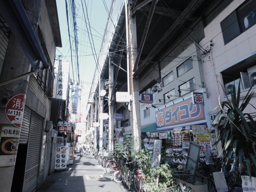 反対側のホームから見ると、床板こんだけしかないんですよ。隙間に見えているのは下を交差する千日前通です。