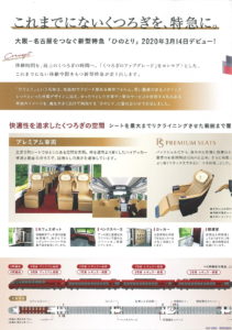 2020春にデビューする近鉄80000系「ひのとり」。プレミアムシート体験キャラバンでゲットしたパンフレットです。