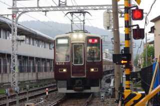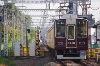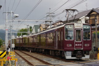 元々複線幅で作られた阪急嵐山線。架線柱内側になる旧下り線側からの撮影が一番良いのですが、嵐山駅付近のカーブはそれがカーブ外側でやや残念。た...